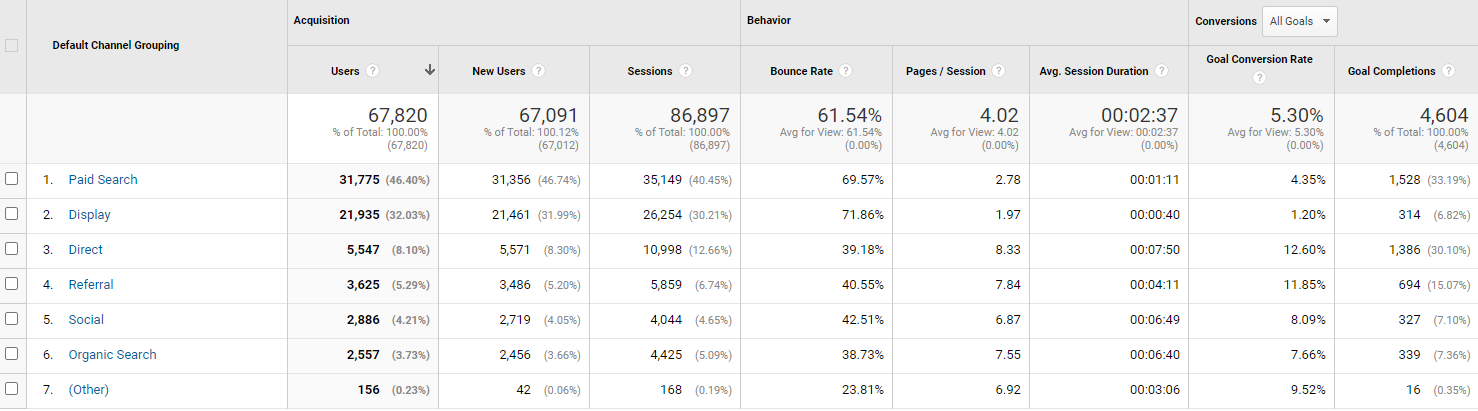 UA 보고서는 획득(Acquisition), 동작(Behavior), 전환(Conversions)으로 구분하여 사용자(users), 신규방문자(new users), 세션(Sessions)을 구분하여 확인할 수 있습니다.