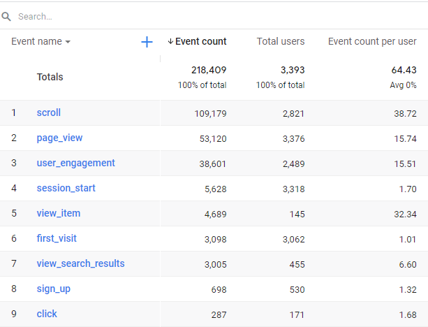 구글애널리틱스(GA4)는 500개의 이벤트(event)로 제한되어 있지만 이벤트가 500개가 넘지 않으면 데이터를 계속 집계할 수 있습니다.
