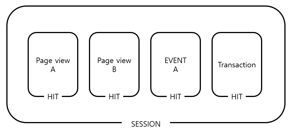 구글 애널리틱스(GA4)는 이벤트를 기반으로 데이터를 수집합니다. 각각의 이벤트 역시 조회(hit) 웹사이트에서 발생한 상호작용을 이벤트로 판단하여 모든 이벤트를 데이터로 수집합니다.